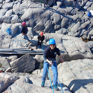 Ce dimanche il faisait encore beau, le guide de haute montagne et les glaciologues ont organisés des séances d'escalade sur rochers avec descente en rappel, c'était super chouette!