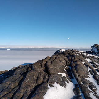 Cette île se trouve à 7km de l'île des Pétrels mais nous ne pouvons pas y aller directement en raison des bergs et de la toute jeune banquise!