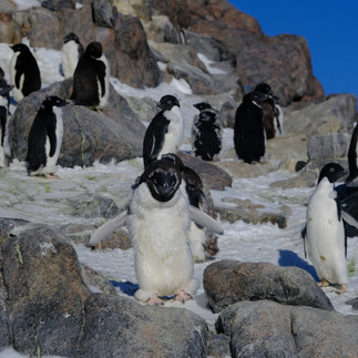 C'était l'occasion de voir un phoque avec une jolie tâche au milieu de la tête, les derniers Adélie en train de muer avant de partir, les premier manchots Empereur qui reviennent.